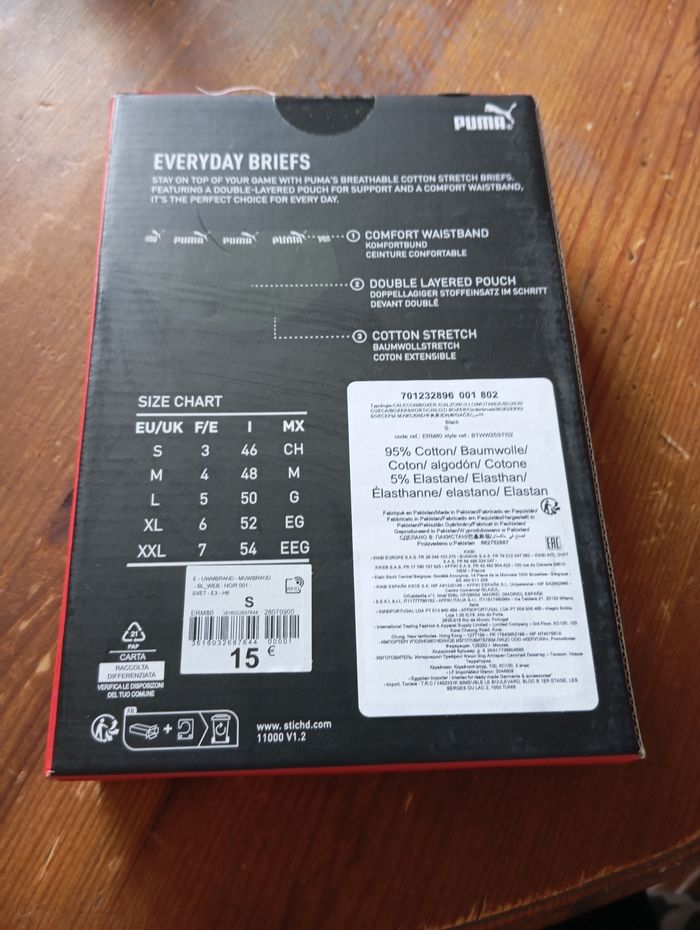 Lot de 2 slips homme de la marque Puma, neufs. Taille S.