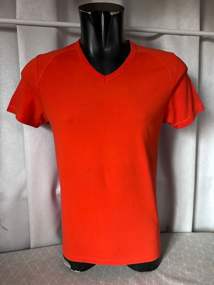 Très beau t-shirt manches courtes, encolure V, orange foncé Taille M Décathlon Domyos 63% coton 34% polyester 3% elastane Dimensions sans tirer Carrure 40 cm Aisselle à aisselle 47 cm longueur 69,5 cm