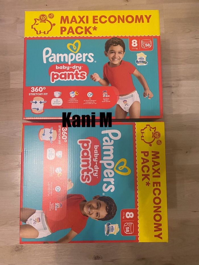 Bonjour 2 cartons de couches Pampers pants taille 8 2x 58 couches