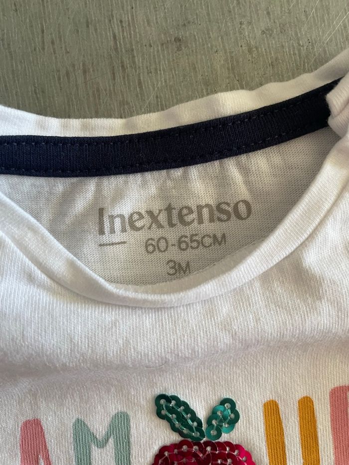 - t-shirt manche longue - blanc et bleu marine - rayure, Amour, sequins - boutons sur l’une des épaules - in extenso - 3mois - jamais porté