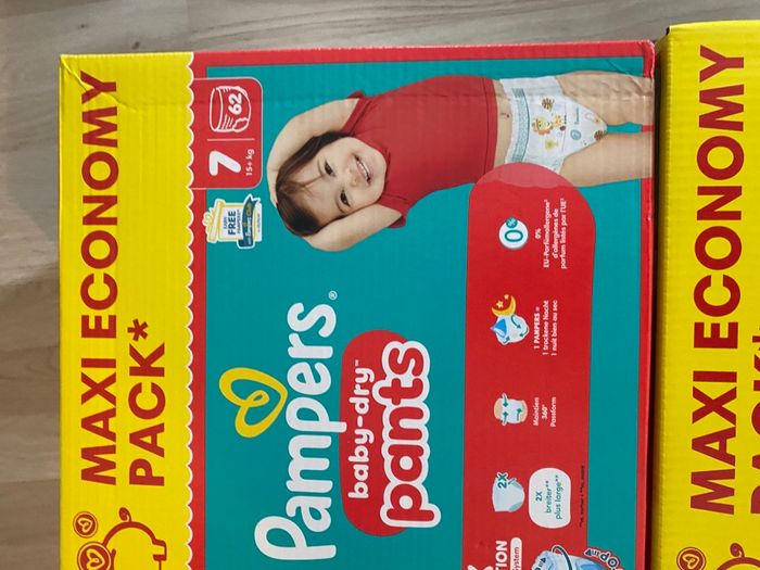 Bonjour 2 cartons de couches pampers pants taille7 2x 62 couches