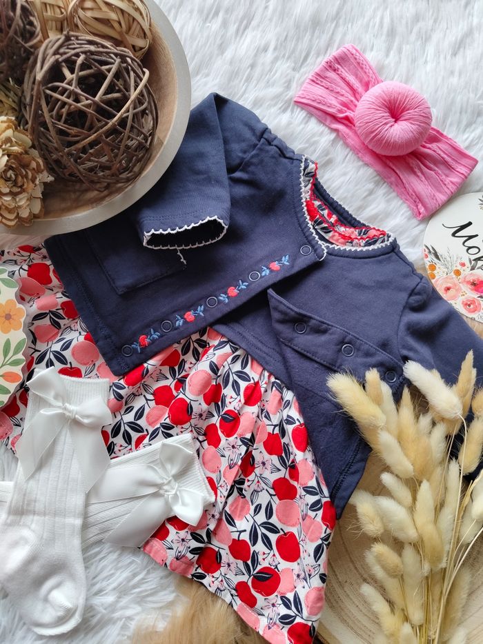 ✅ Excellent état ✅ Ensemble magnifique complet 4 pièces ✅ Gilet/cardigan/veste broderie fruit 🍎+ robe pull bi-matière manches longues fleuri ✅ Bandeau cheveux Neuf et chaussettes hautes neuves 🌸 N'hésitez pas à vous abonner à mon dressing, mise en ligne régulièrement 🌸