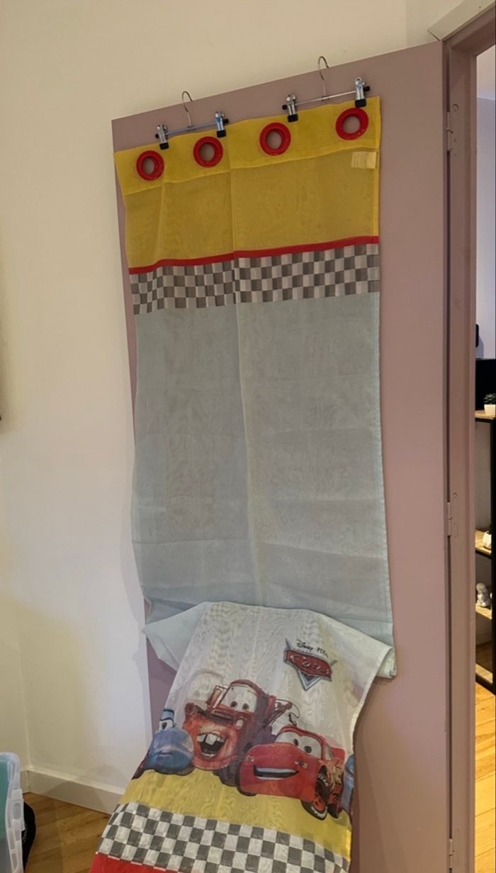 Lots décorations CARS❤️ Contient : - 2 grand rideaux - 1 sac de rangement suspendu - 4 oreillers