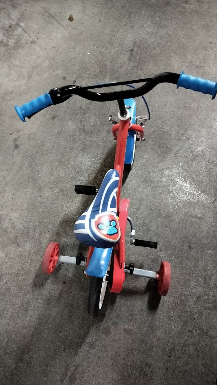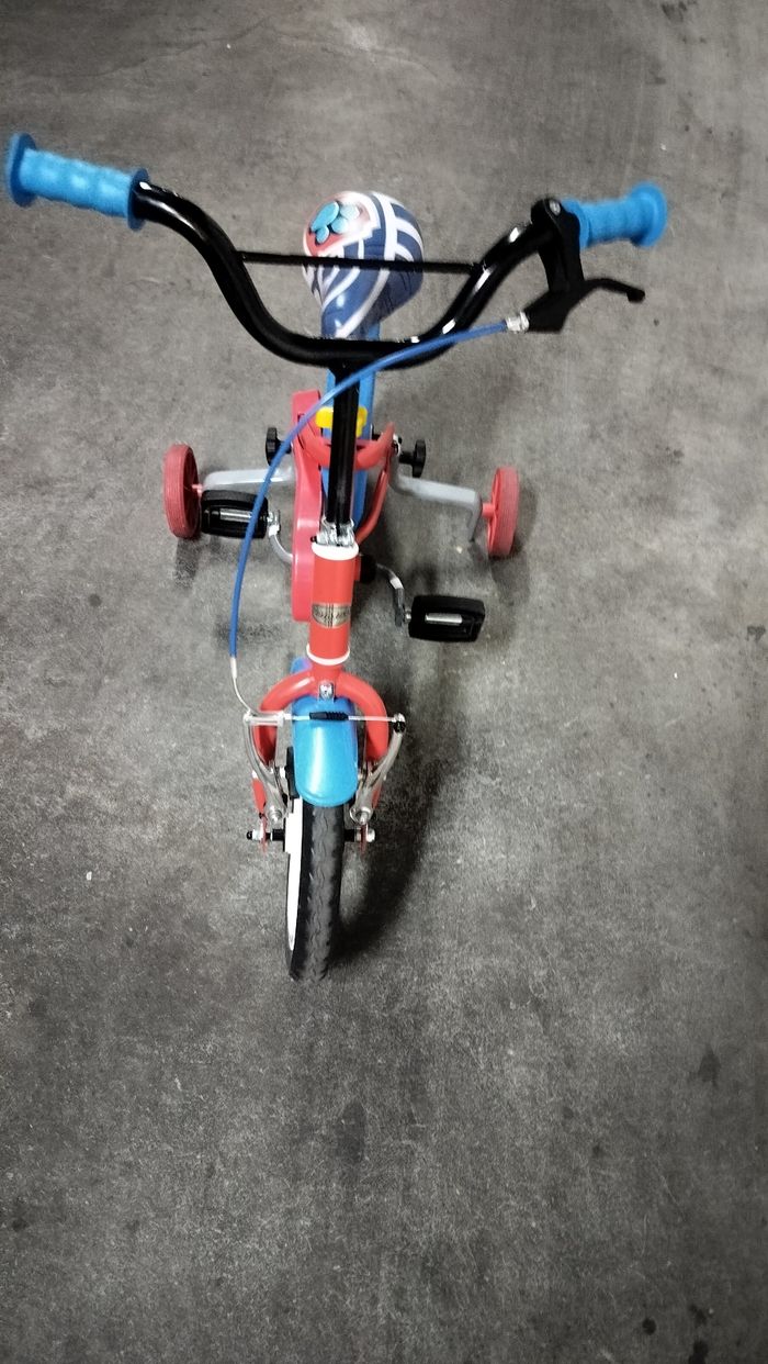 Vends vélo pour enfant aux couleurs de la Pat' Patrouille, idéal pour l'apprentissage de l'équilibre et les premières balades. Le vélo est en très bon état général, propre et prêt à rouler ! ​Caractéristiques principales : ​Taille : 12 pouces (idéal pour un enfant de 2 à 4 ans, mesurant environ 85 à 100 cm). ​Sécurité : Équipé de deux stabilisateurs (petites roues) amovibles pour apprendre en toute confiance. ​Freinage : Frein avant au guidon adapté aux petites mains. ​Confort : Selle réglable en hauteur pour suivre la croissance de l'enfant. ​Protection : Carter de chaîne intégral (fermé) pour éviter que l'enfant ne se blesse ou ne se salisse avec la chaîne. ​Accessoires : Garde-boue avant et arrière. ​État : Le vélo a été utilisé mais reste en excellent état. Les pneus et les freins sont fonctionnels. Quelques légères traces d'utilisation normale