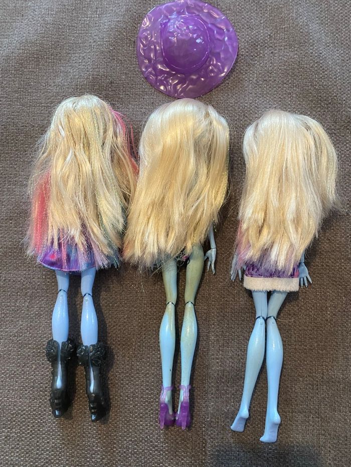 Lot de 3 poupées Abbey Bominable : - série Scaris City Of Frights - série Picture Day - série Tenue de plage Monster High Vous achetez ce que vous voyez sur les photos