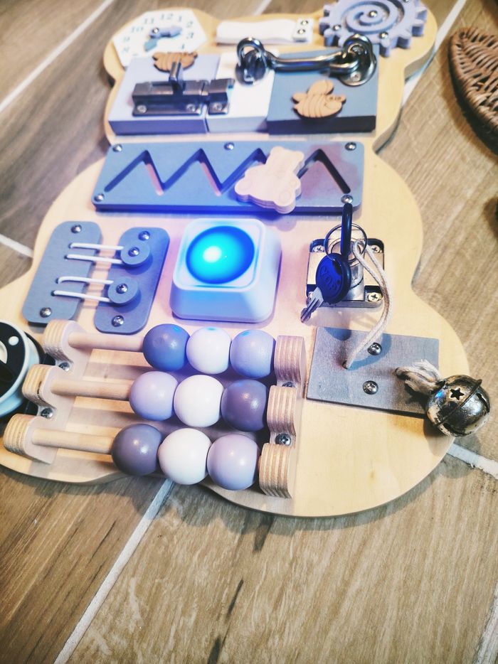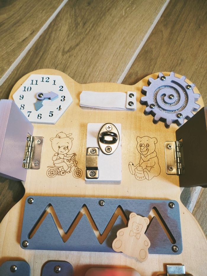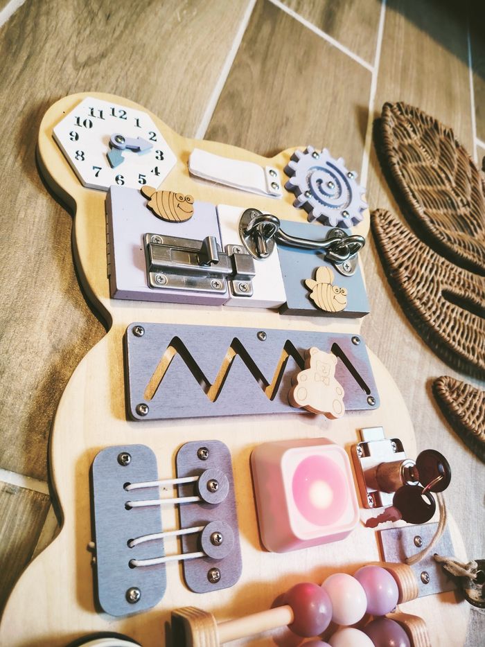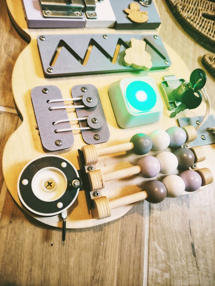 🐻Jeu d'éveil -Planche busy board en bois multi activités - Montessori - JB1949