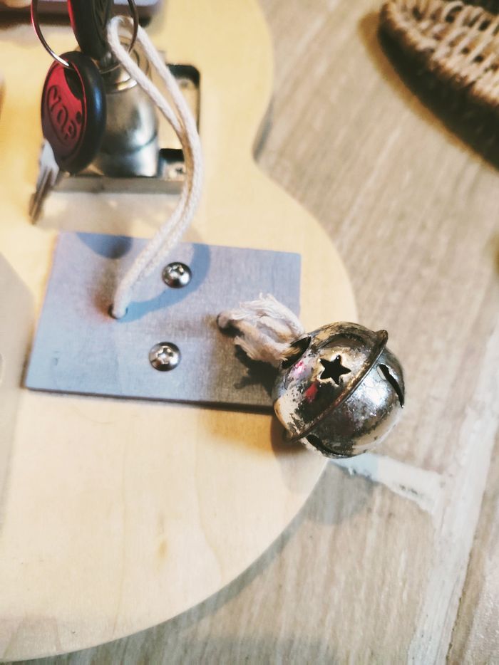 ✨Sensorialité : Une petite clochette sonore et des lacets à enfiler.