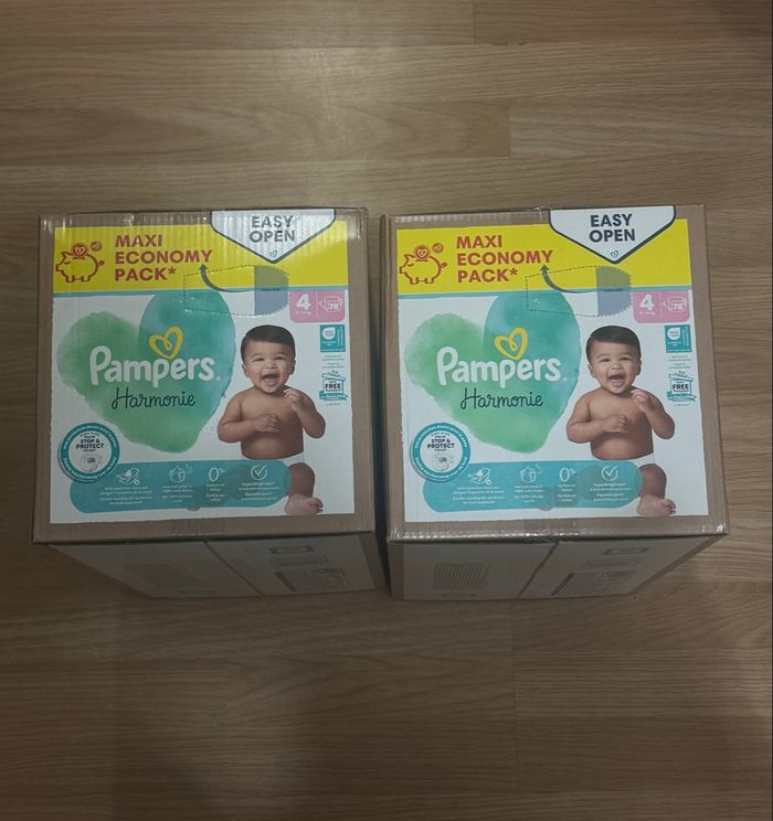 Lot de 2 cartons de Pampers Harmonie – 38€ Je vends 2 cartons de couches Pampers Harmonie, neufs et jamais ouverts. Autres tailles dispo Prix : 38€ le lot.