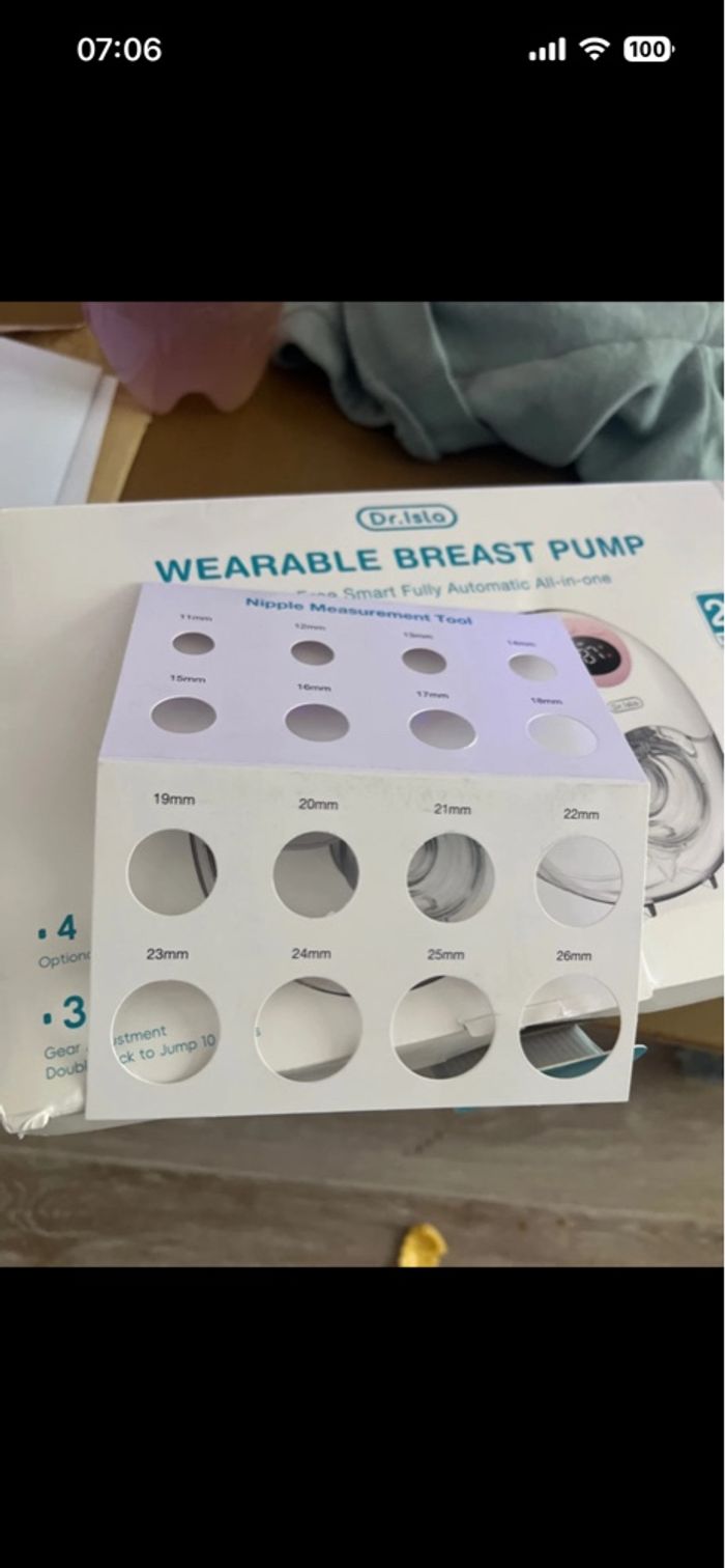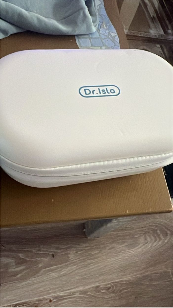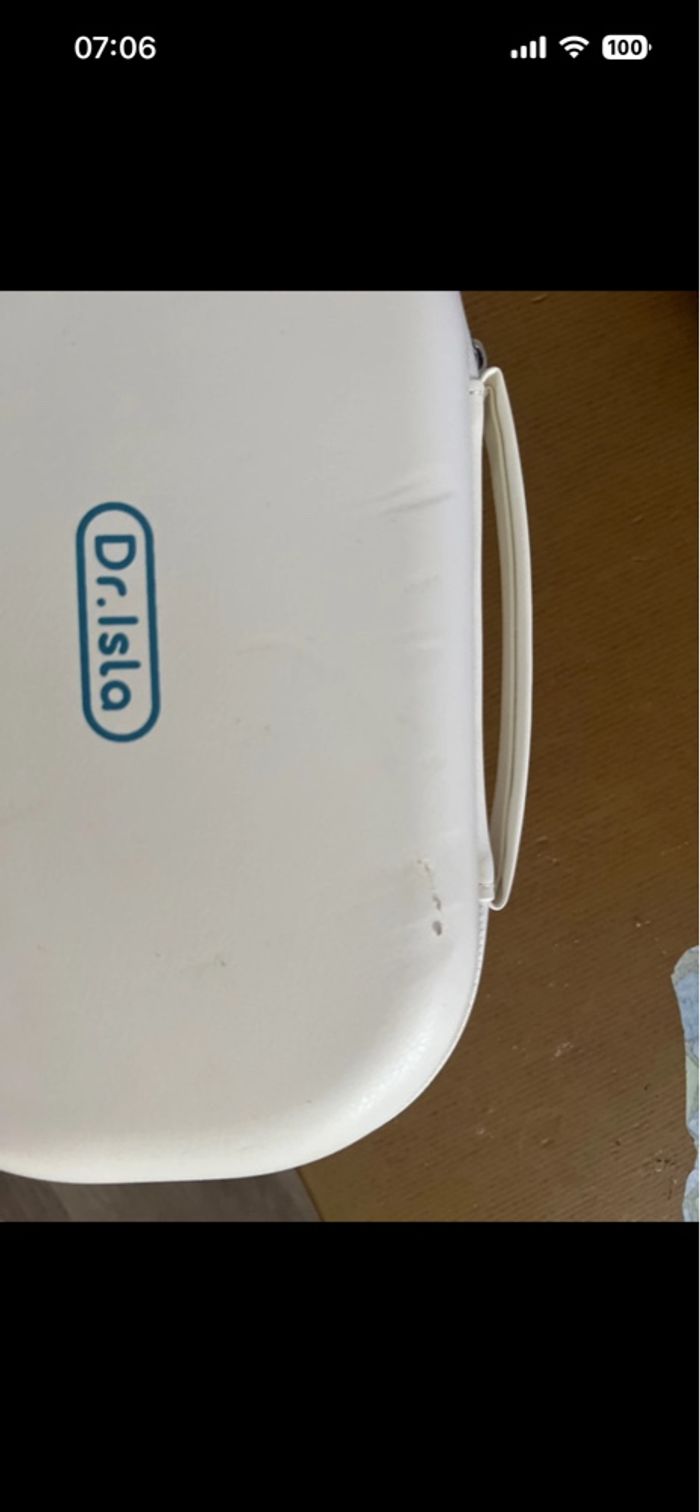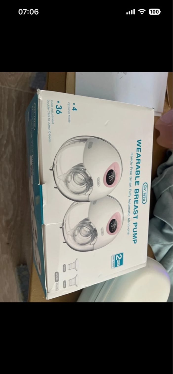Bonjour je vends ce tire lait électrique casi neuf je ne l’ai utilisé que quelques fois très pratique car on n’a les mains libres plusieurs taille de téterelles donc il s’adapte à toute poitrine il y a un léger accro sur la pochette comme vu sur la photo. Il est bleu et blanc c’est la marque dr isla .
