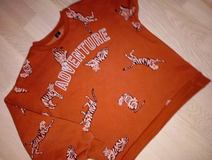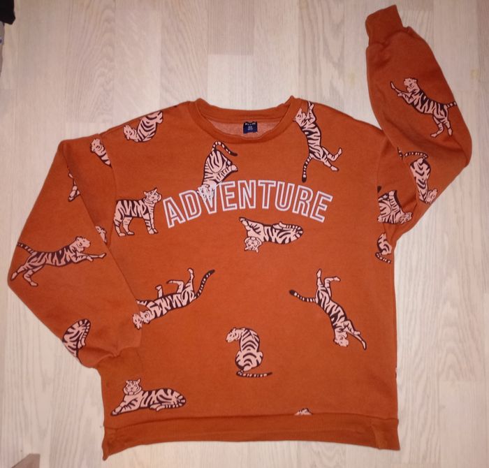 Sweatshirt brique motifs tigres Marque : Kiabi T. 10 ans Très bon état général