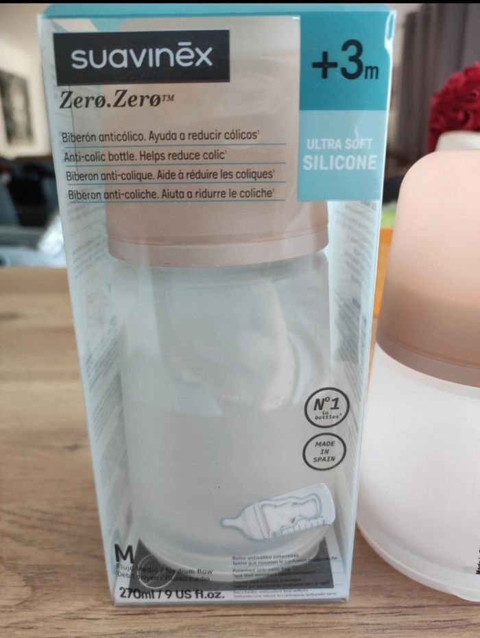 Je vends 1 biberon suavinex 180ml avec deux tétines débit 1 pour 0 à 3 mois 2 biberons suavinex 270ml avec trois tétines débit 2 3 à 6 mois