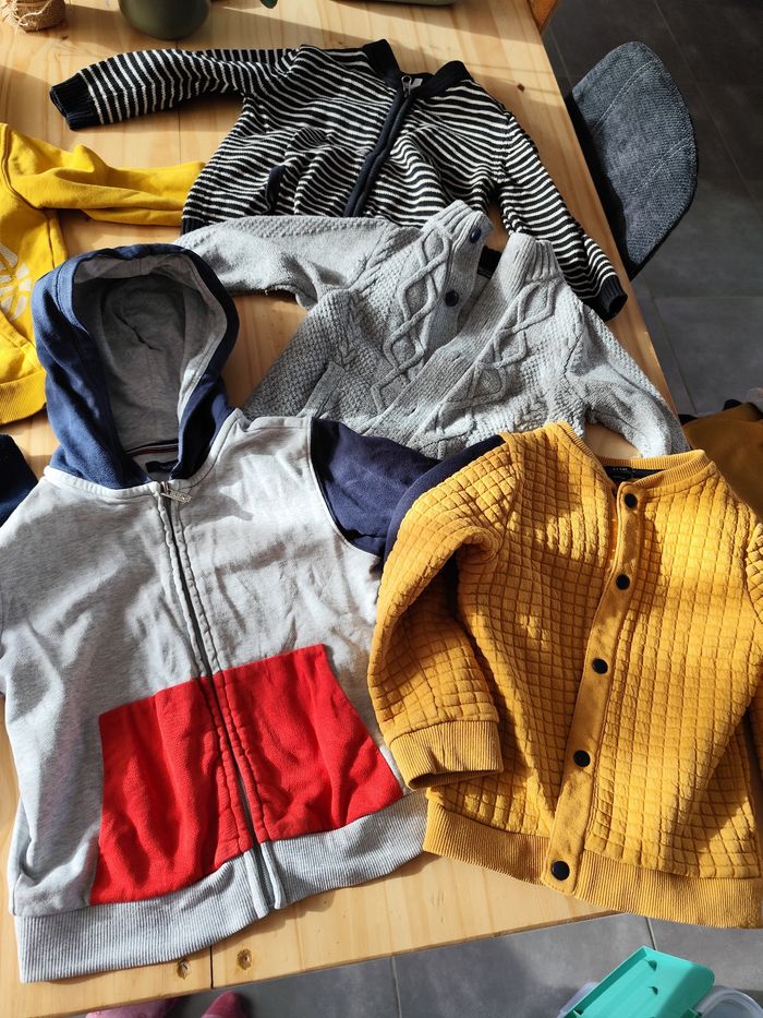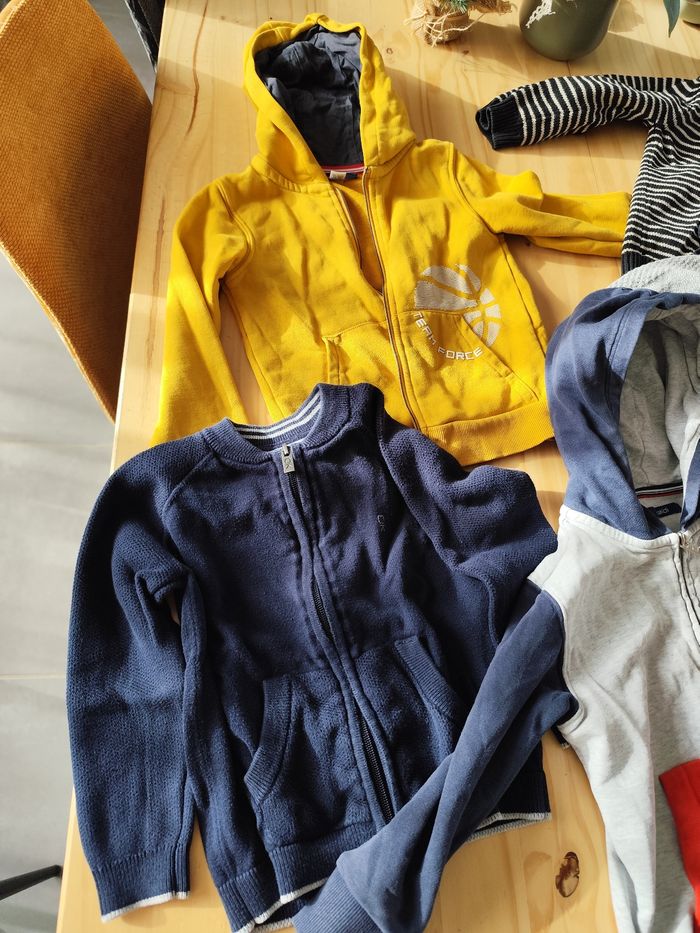 Lot de gilets et sweats zippés 4 ans garçon Très bon état Un petite tâche sur l'un, voir photo Diverses marques