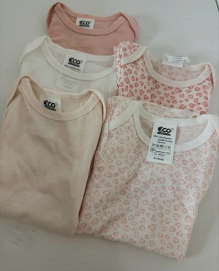 Lot de 5 bodies manches courtes 6 mois neuf eco + - photo numéro 1