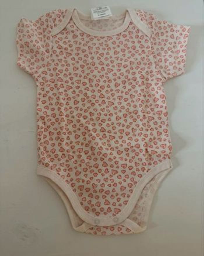 Lot de 5 bodies neuf 6 mois Manches courtes Motifs : blanc, rose, rose pâle, cœurs rose clairs et cœurs rose plus foncés