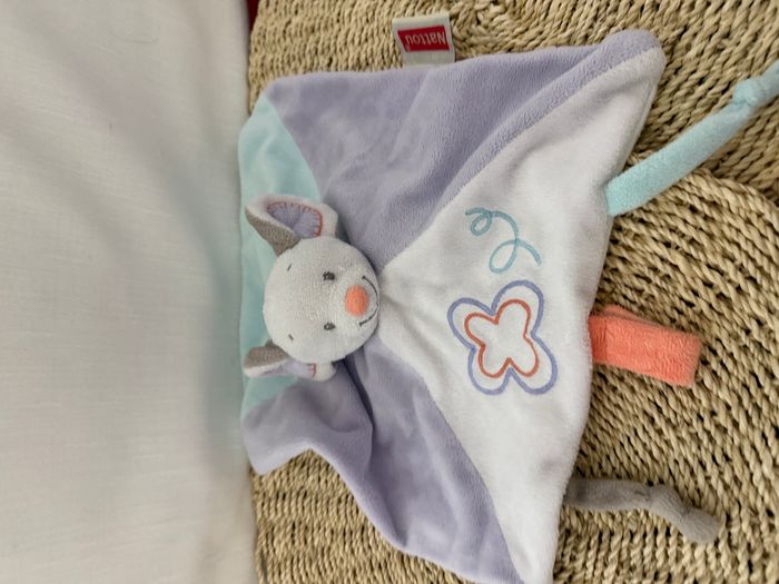 Doudou plat souris mauve bleu blanc gris NATTOU - photo numéro 3