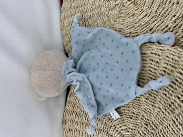 La Nina Doudou Ours Plat Beige Bleu Etoiles Noeuds  - photo numéro 4