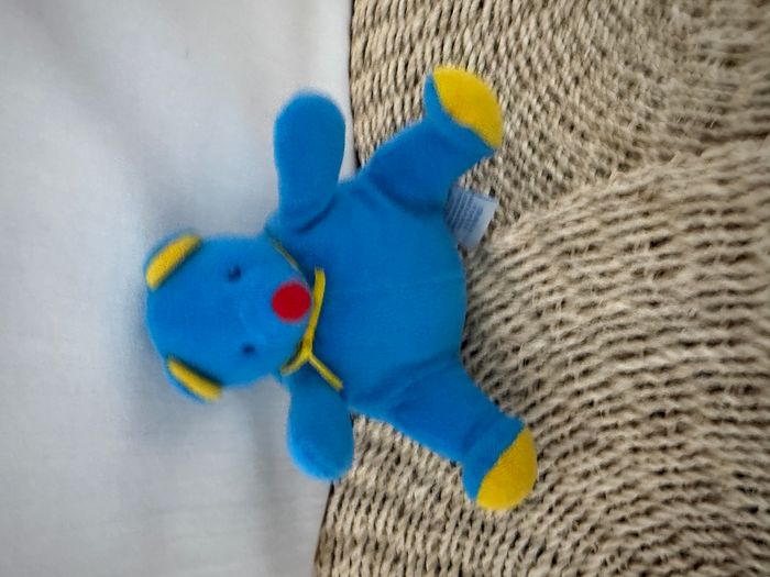 Doudou ours jaune rouge bleu Eden  - photo numéro 4