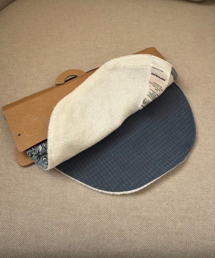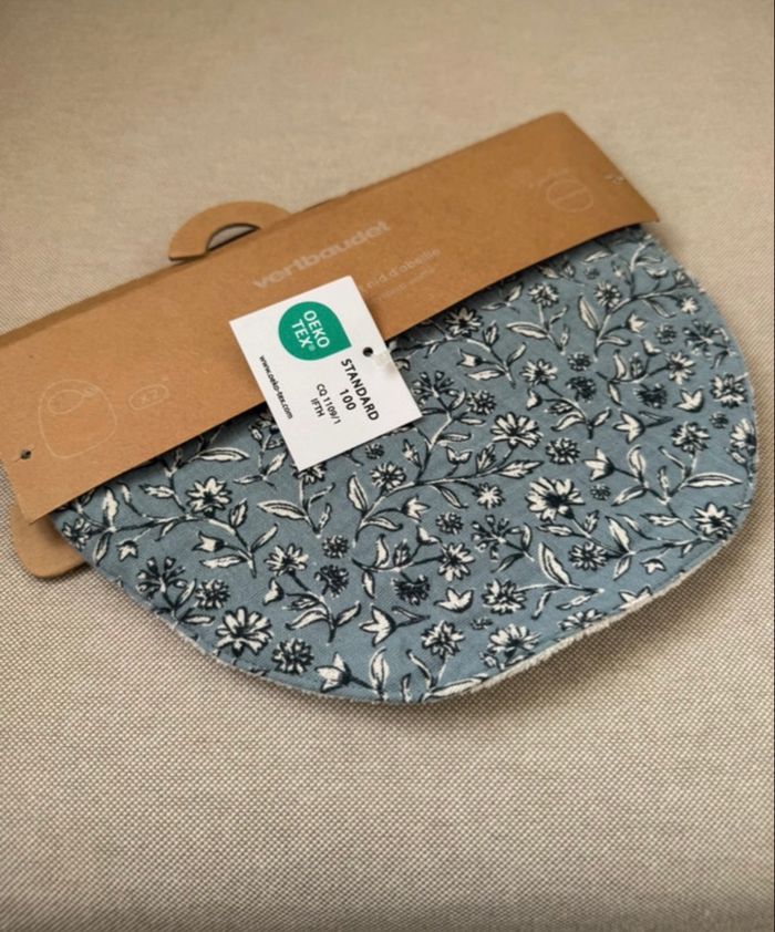 Lot de deux bavoirs Verbaudet neufs Un motif fleuri jersey, l’autre bleu en nid d’abeille Vient de Vertbaudet Sortie de l’emballage juste pour prendre en photo