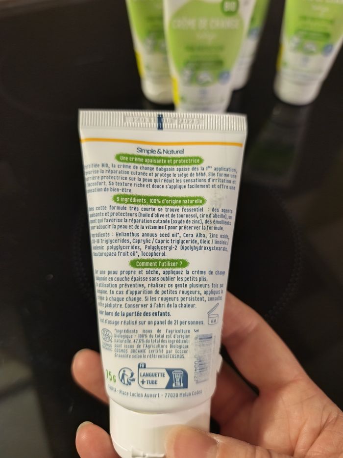 Bonjour je vends 5 tubes neuf de crème de change siège pour bébé de babysoin bio. Attention la date est passée elle est de août 2025.