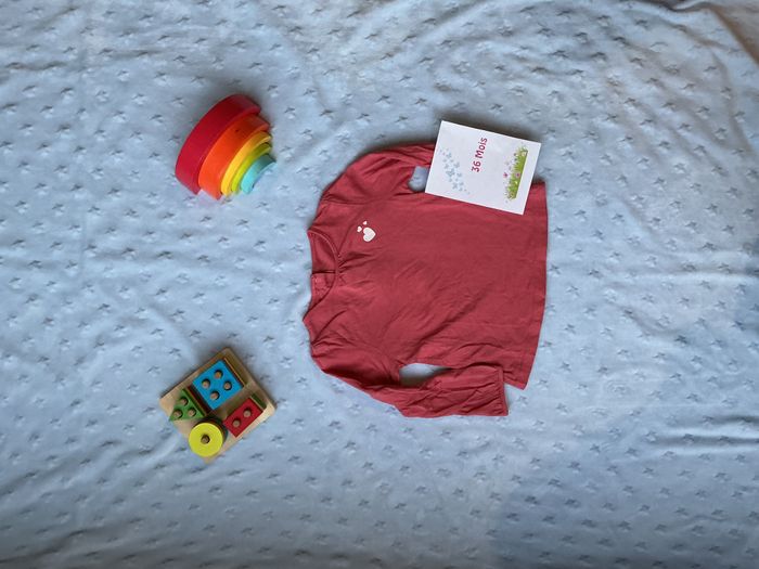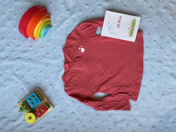 teeshirt manches longues rose coeurs poitrine 36 mois - photo numéro 5