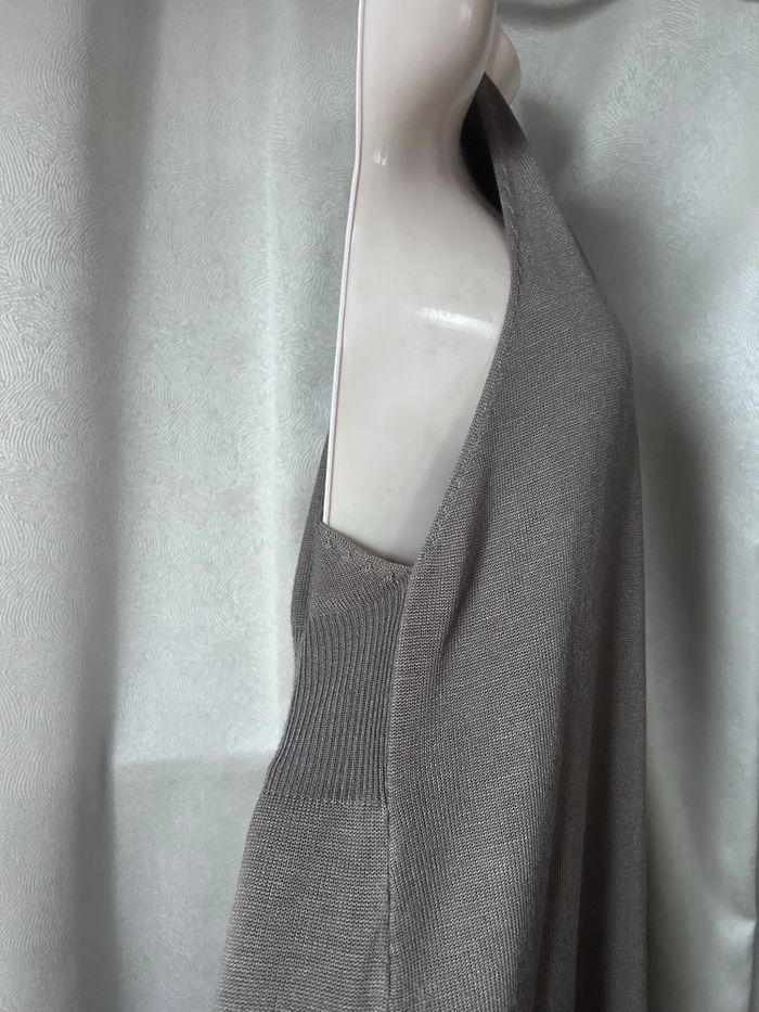 Gilet fluide sans manche taupe Larges emmanchure 80% viscose 20% elastane Taille unique C.M.P.55 Longueur 82,5 cm