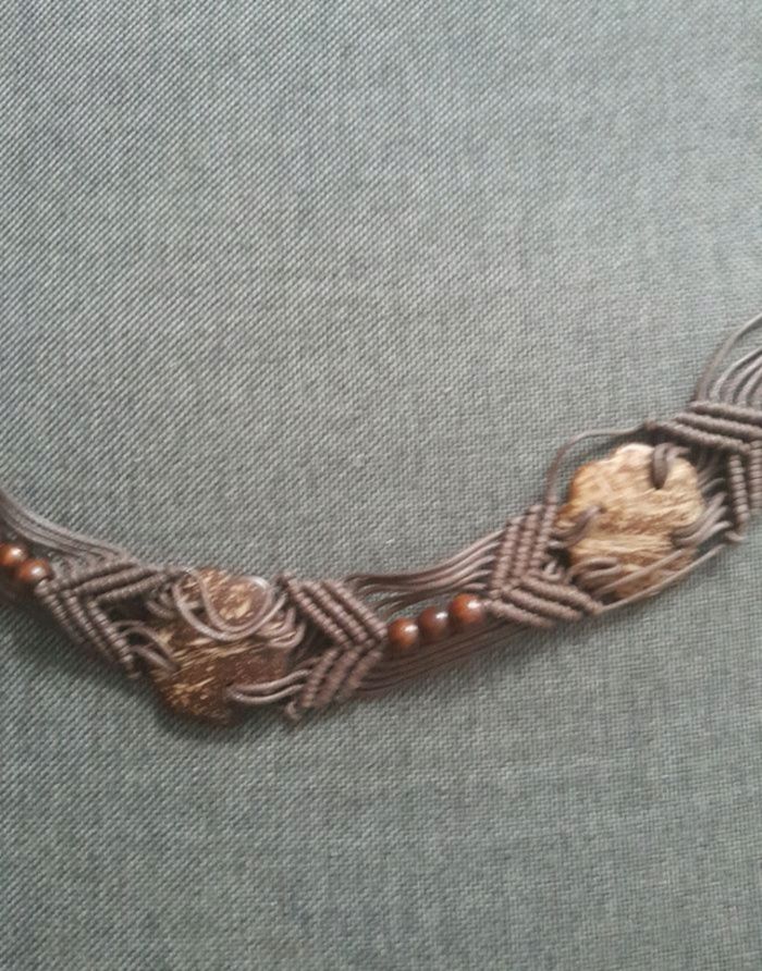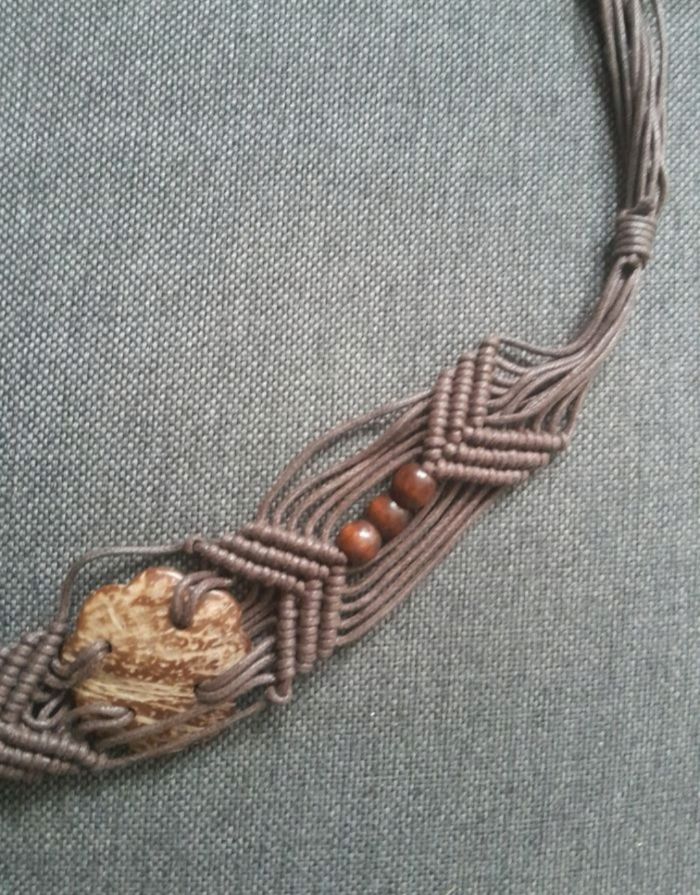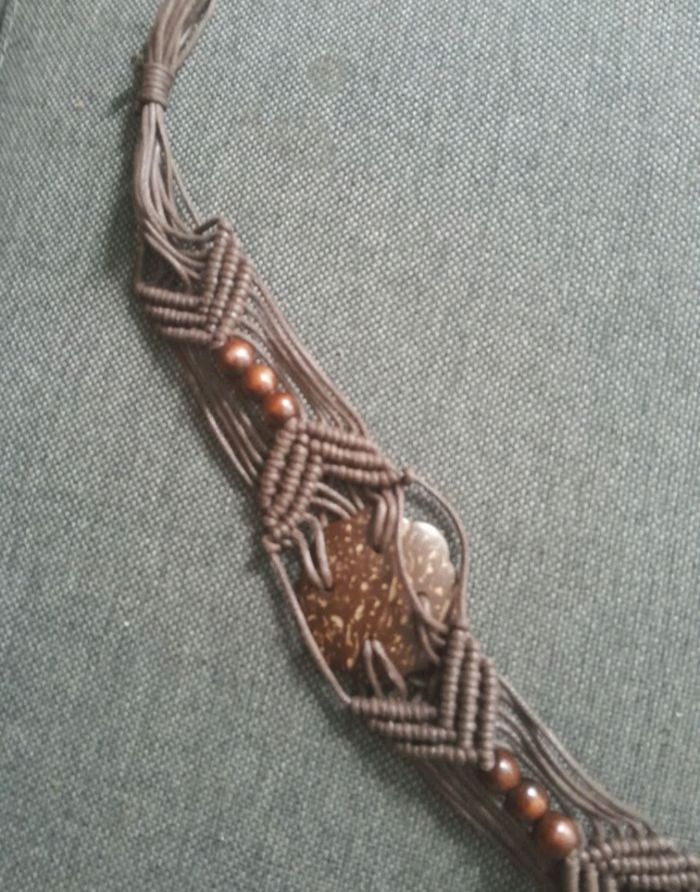 Ceinture marron fils cordon et perle et fleur en bois - photo numéro 8