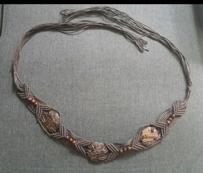 Ceinture marron fils cordon et perle et fleur en bois. Jamais porté 1m66 de long 5cm de large