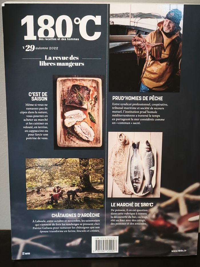 NEUF Revue 180°c ( des recettes et des hommes). Numéro 29 Le chef Christopher Coutanceau, les cèpes et les châtaignes (Ardèche), les vins de Gaillac, et un reportage sur les "Prud'homies de pêche" en Méditerranée.