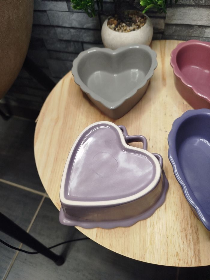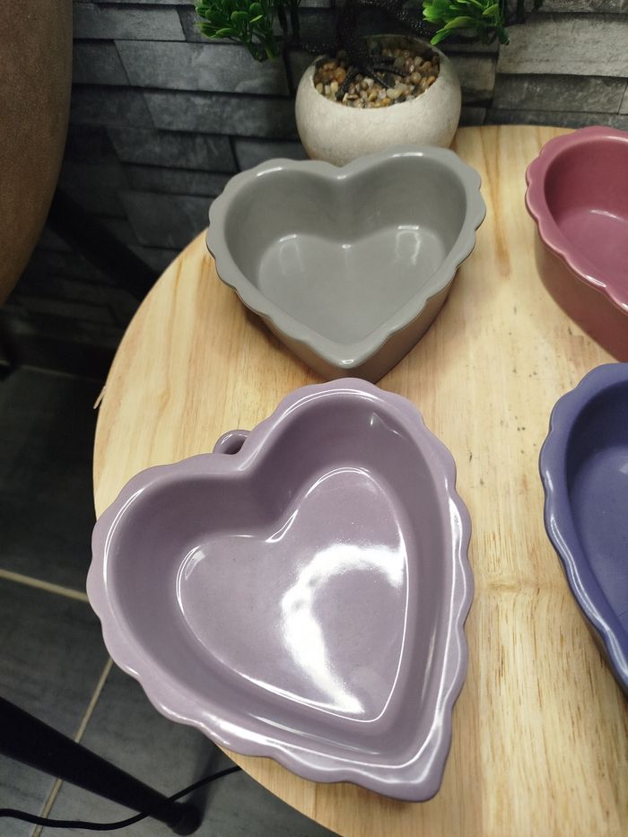 Lot de 4 ramequins coeur 4 couleurs différentes Longueur 14 cm Largeur 13 cm Hauteur 5 cm 445