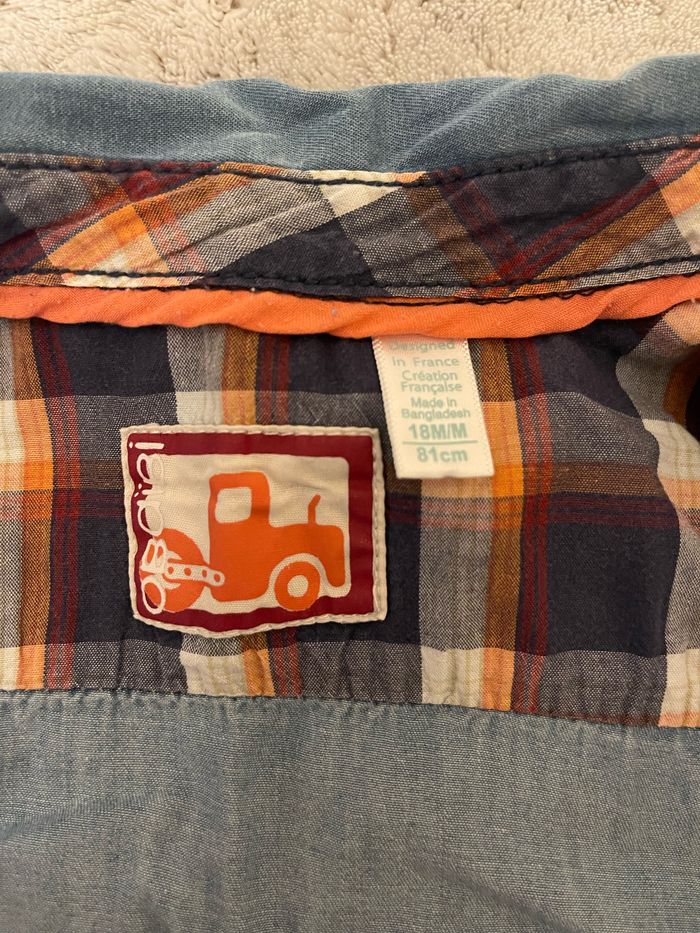 Chemise bleu jean délavée tendance 100% coton avec doublures aux boutonnières, en très bon état. Taille : 18 mois - 81 cm 🚚 Livraison : Envoi possible via Mondial Relay, Colissimo ou autres transporteurs proposés par la plateforme. 🤝 Remise en main propre possible à Combs-la-Ville Si vous avez des questions ou souhaitez d’autres photos, n’hésitez pas à me contacter.
