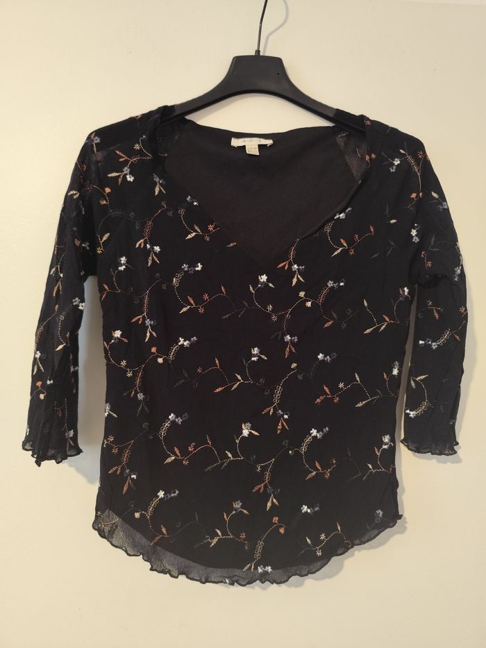 Blouse noire motif floral taille 42 marque 123