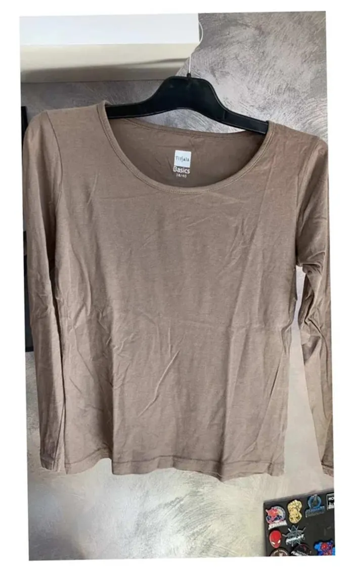 T-shirt manches longue femme couleur marron taupe taille 38/40 marque Tissaia - photo numéro 1