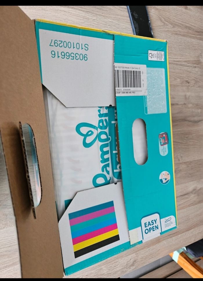 Couches pampers 86 couches taille 4+ Carton ouvert mais emballage intérieur toujours fermé jamais servi.