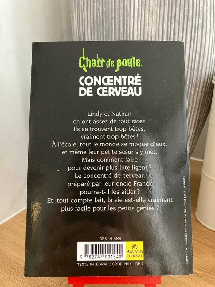 Bonjour, je vend le livre de poche horreur / fantastique Chair de Poule : Concentré de cerveau, de l’auteur RL Stine aux éditions Bayard. Livre en état impeccable. Édition de 2001. D’autres Chair de Poule sont en vente dans mon dressing.