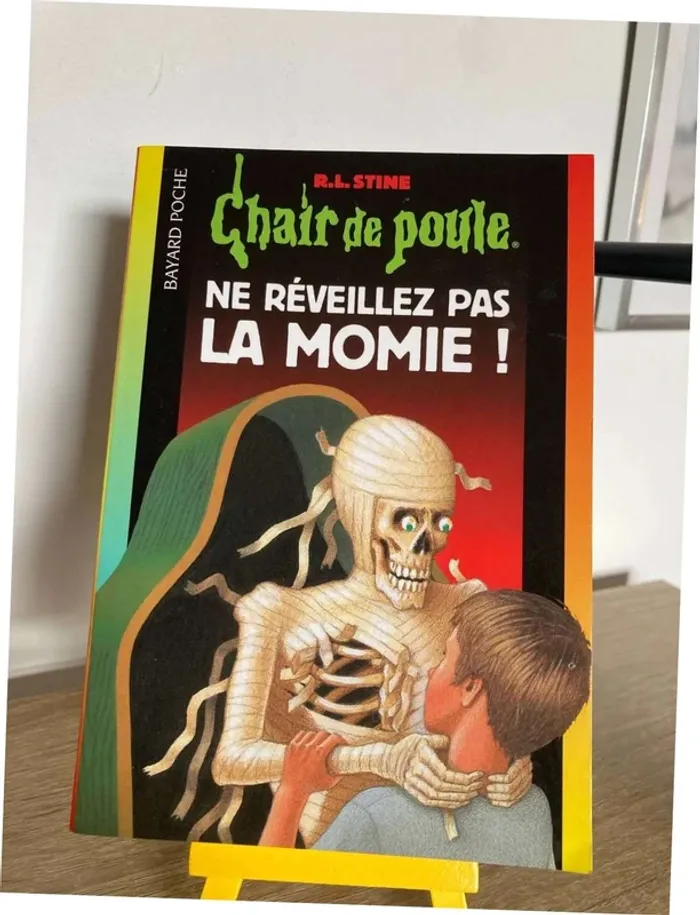 Bonjour, je vend le livre Chair de Poule : Ne réveillez pas la momie de RL Stine aux éditions Bayard. Coin des pages légèrement relevé en bas mais le reste est impeccable. Livre en très bon état, date de 2001. D’autres Chair de Poule sont présents dans mon dressing.
