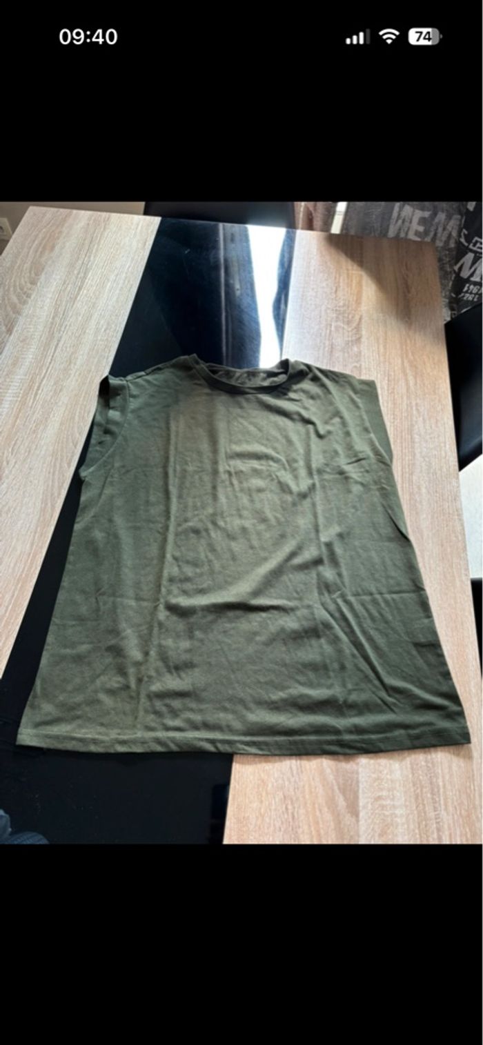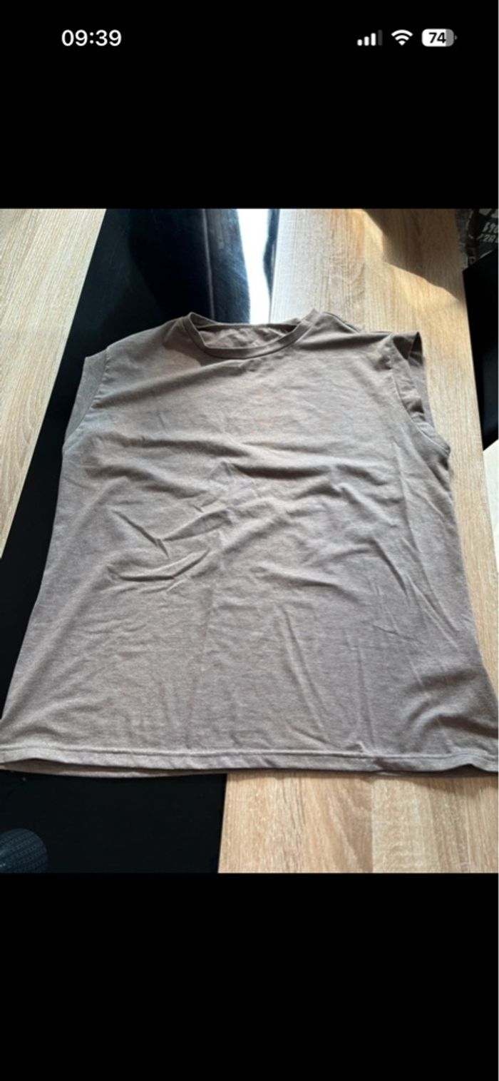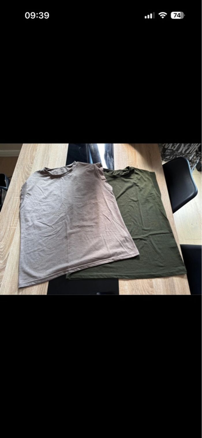 2 Tshirts femme sans manches Ouverture des bras larges Taille L 40/42 1 vert kaki et 1 marron Très bon état
