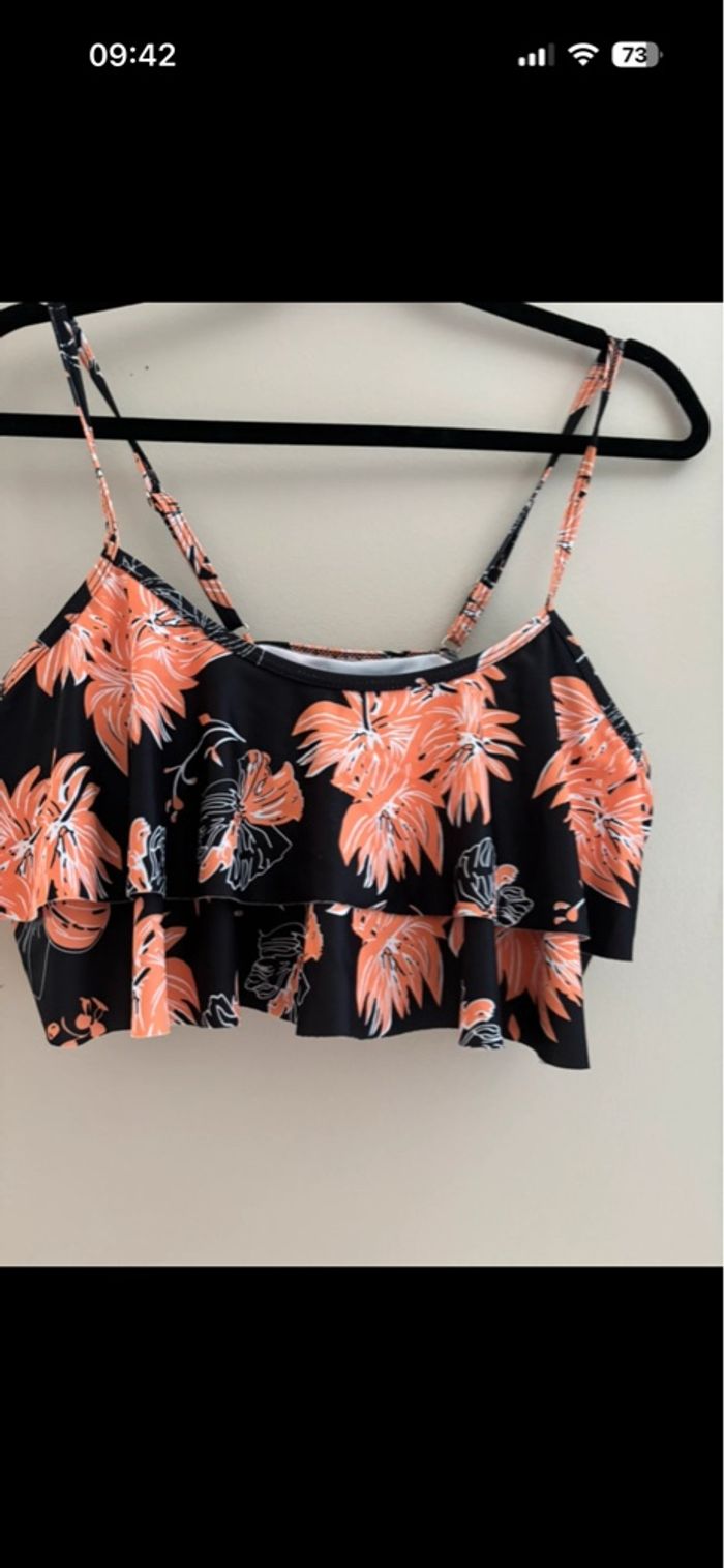 Haut de maillot de bain Noir, orange, blanc, fleuri Taille L Très bon état