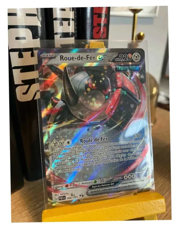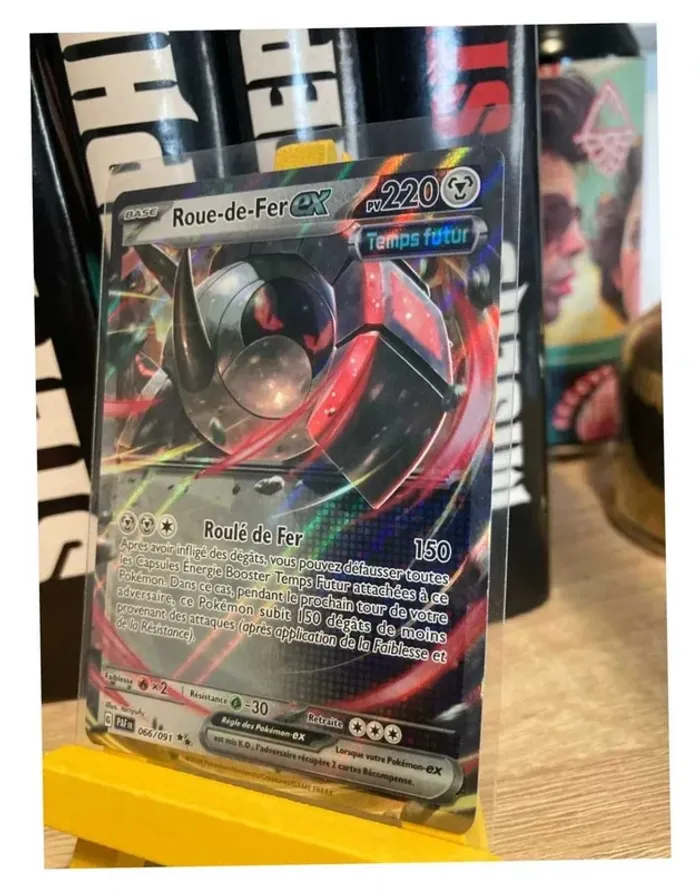 Bonjour, je vend la carte Pokémon Roue-de-Fer Ex, numéro 066/091, en état impeccable. Carte mise sous sleeve directement à sa sortie de booster.