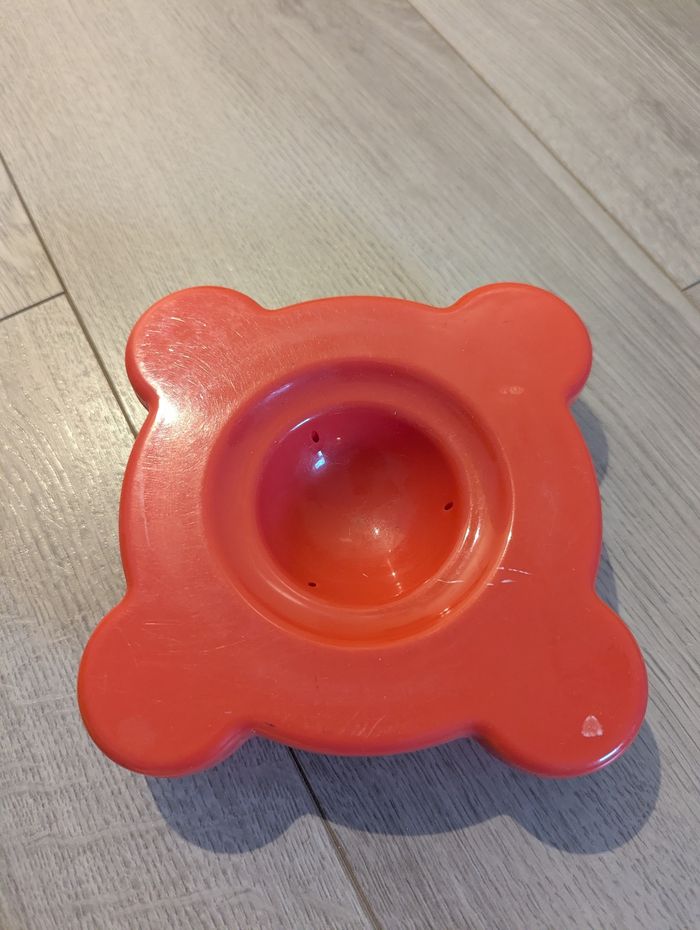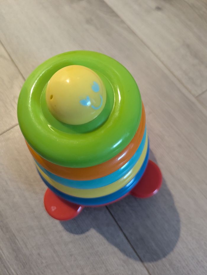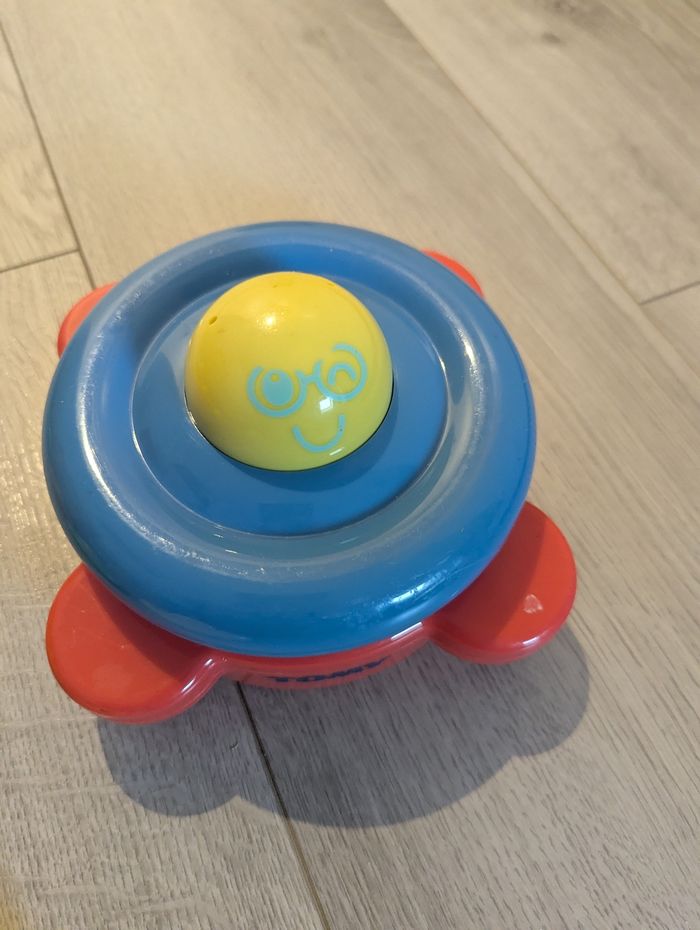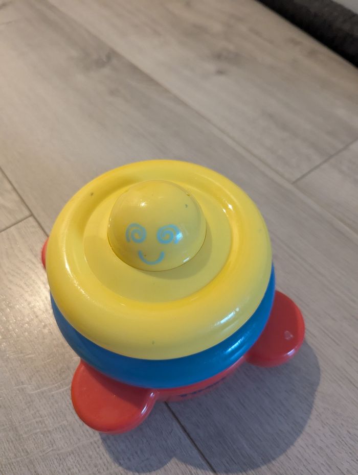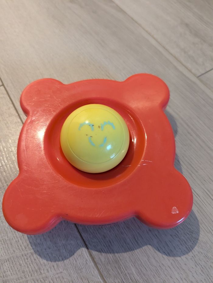 Jeu à partir de 6 mois, utilisé mais en bon état. Quelques traces d'usures sur la balle et le support.