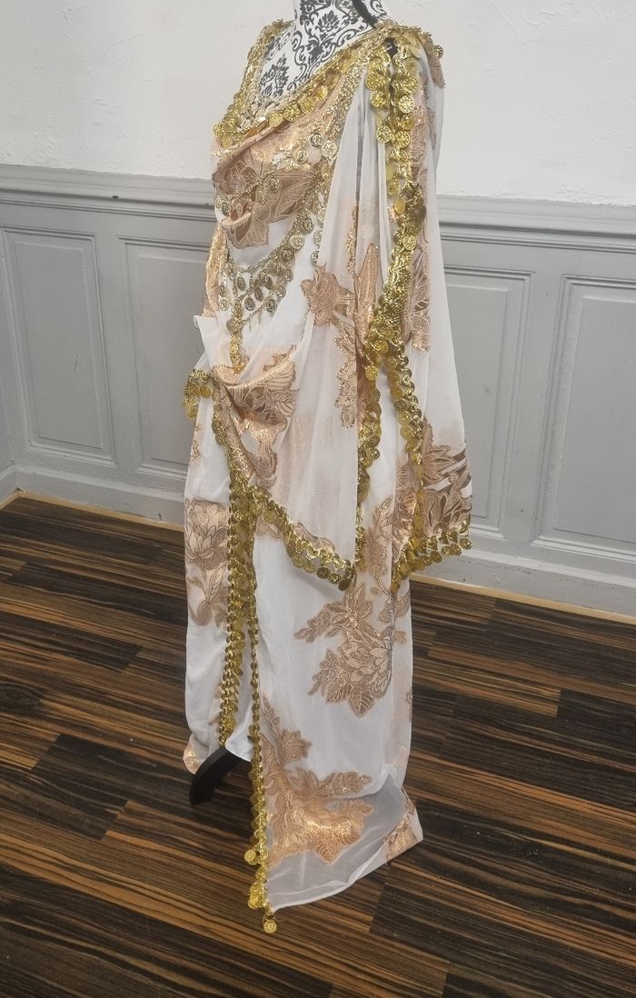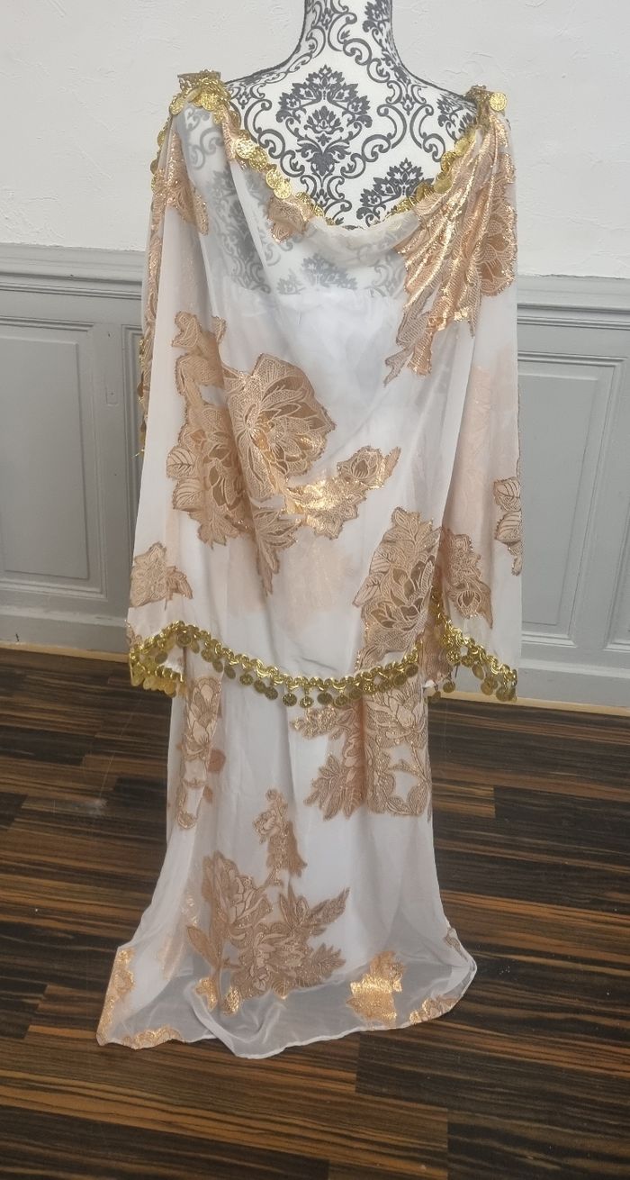 tenue traditionnelle chaoui melhfa enfant blanc et or taille 12/13 ans - photo numéro 1