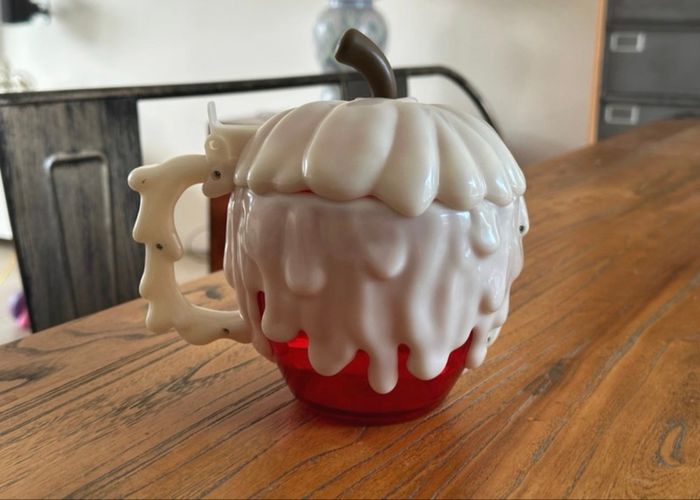 Saut à pop-corn DisneyLand Paris blanche neige pomme empoisonné C’est la toute première version qui était sortie sur le parc, elle est phosphorescente la nuit #disneylandparis #disneyhalloween #blancheneige #sautàpopcorn