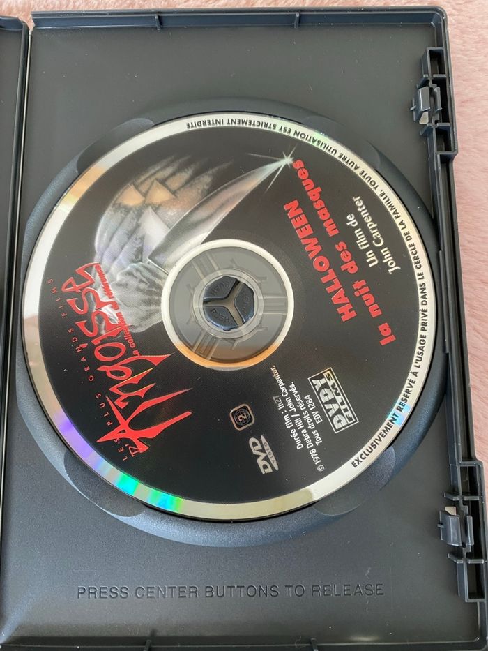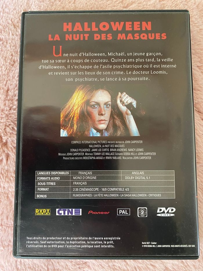 Je vends le film culte "Halloween la nuit des masques" en DVD, un classique de l'horreur. - Type de produit : DVD - Titre : Halloween la nuit des masques - Type de contenu : Film - Langues audio : Français, Anglais - Sous-titres : Français - Bonus inclus : Filmographies, La saga Halloween - Critiques État neuf, visionne une seule fois . N'hésitez pas à me contacter pour plus d'informations. Bon visionnage !