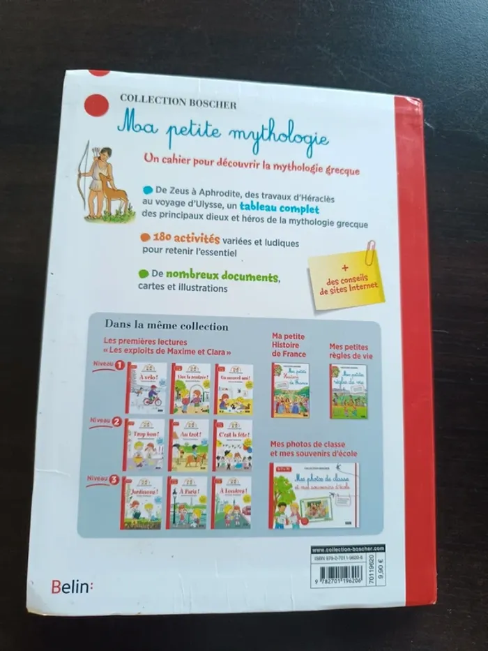 Cahier d'activités MA PETITE MYTHOLOGIE BON ETAT ( car quelques réponse de faîtes mais gommées car crayon papier) Allez voir mes autres ventes!