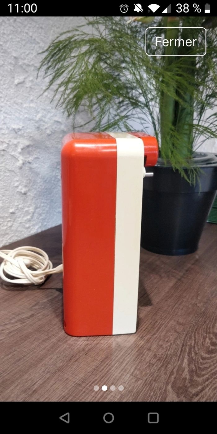AUthentique ouvre-boîte électrique de la marque SEB, l'icône des cuisines rétro ! Avec son design typique orange et crème, il apportera une touche déco "pop" irrésistible à votre plan de travail. Très bel état esthétique (voir photos). Parfaitement fonctionnel. Nettoyé et prêt à l'emploi