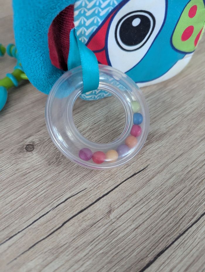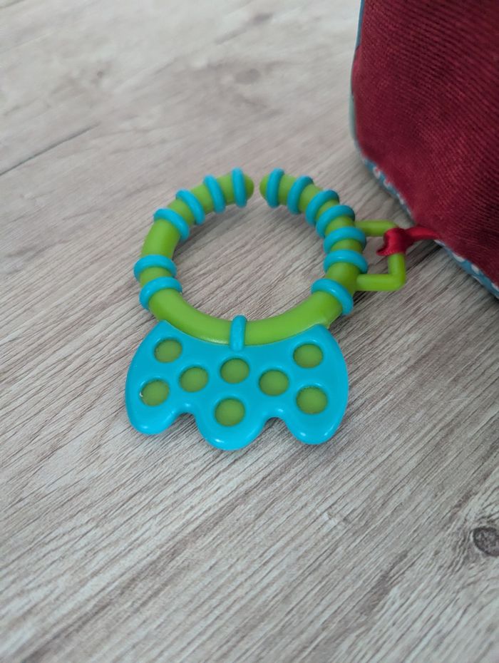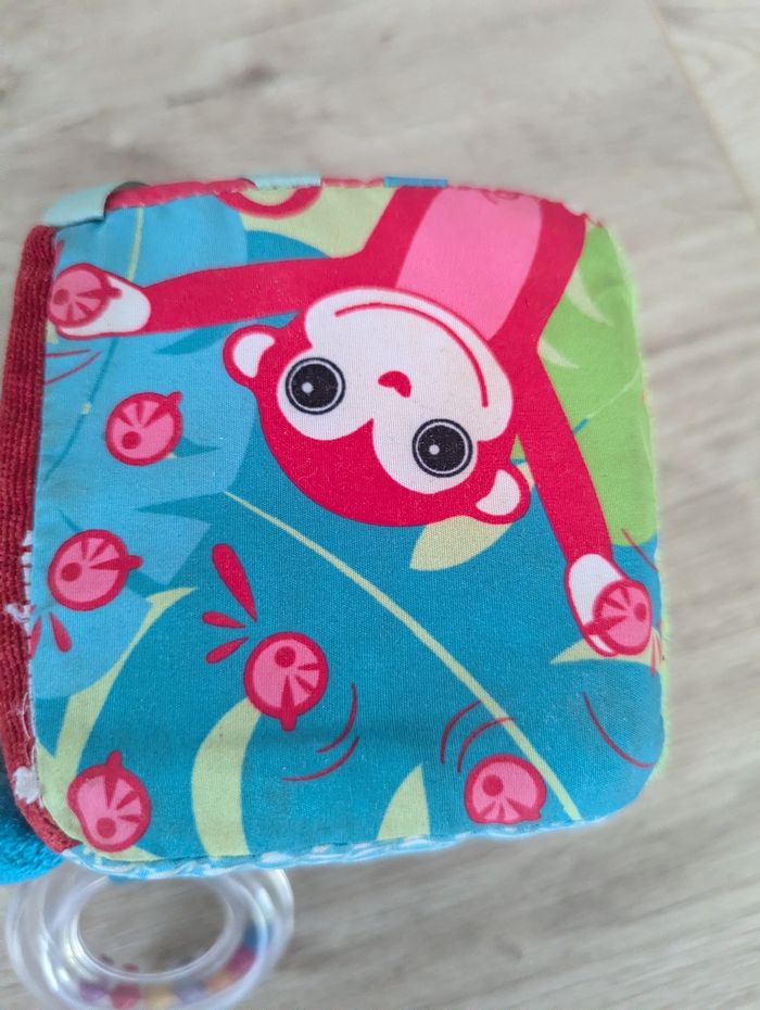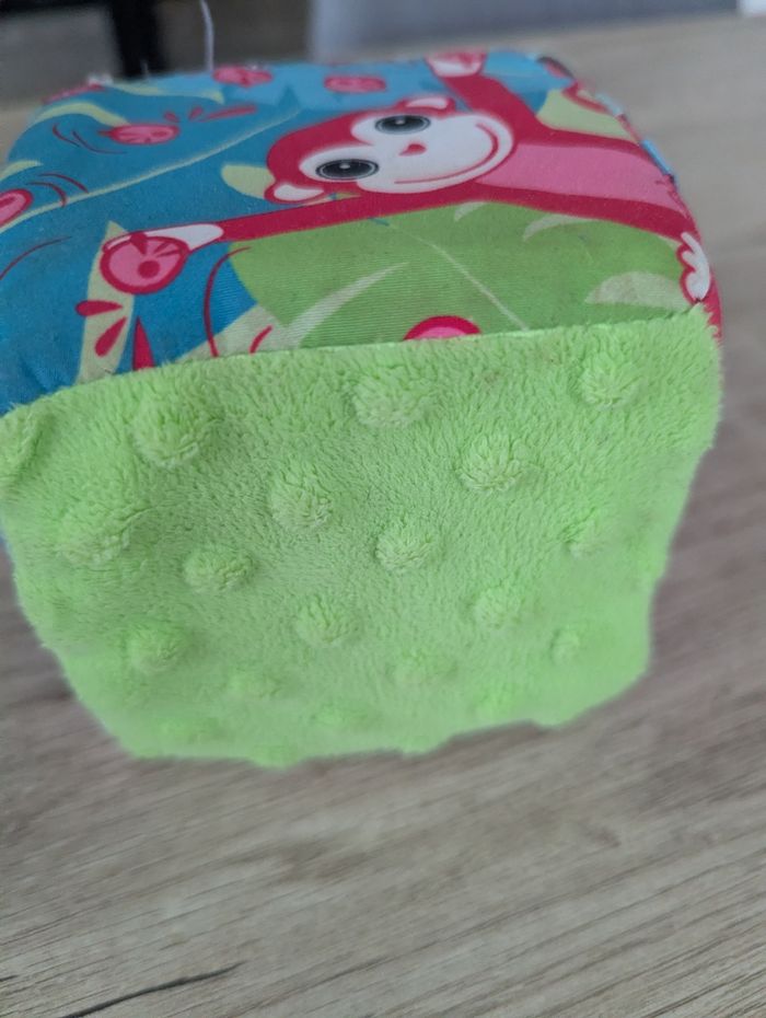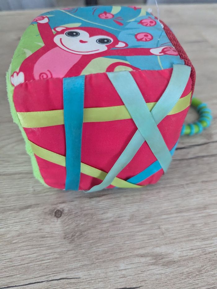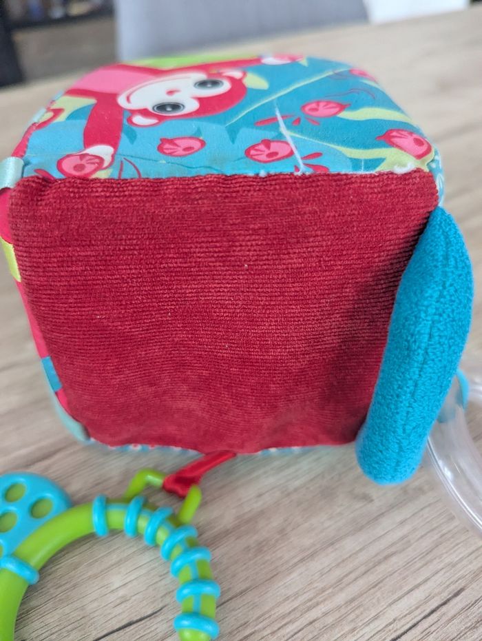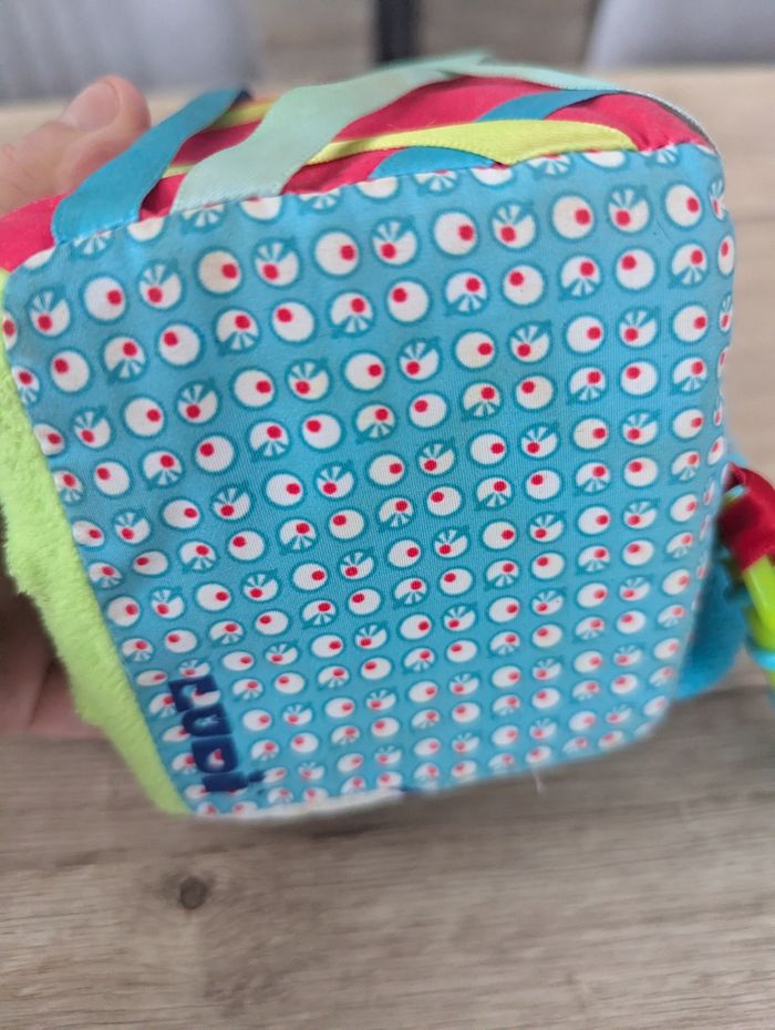 Cube d'éveil multi sensoriels, fait du bruit type hochet. En très bon état, pas de défaut.
