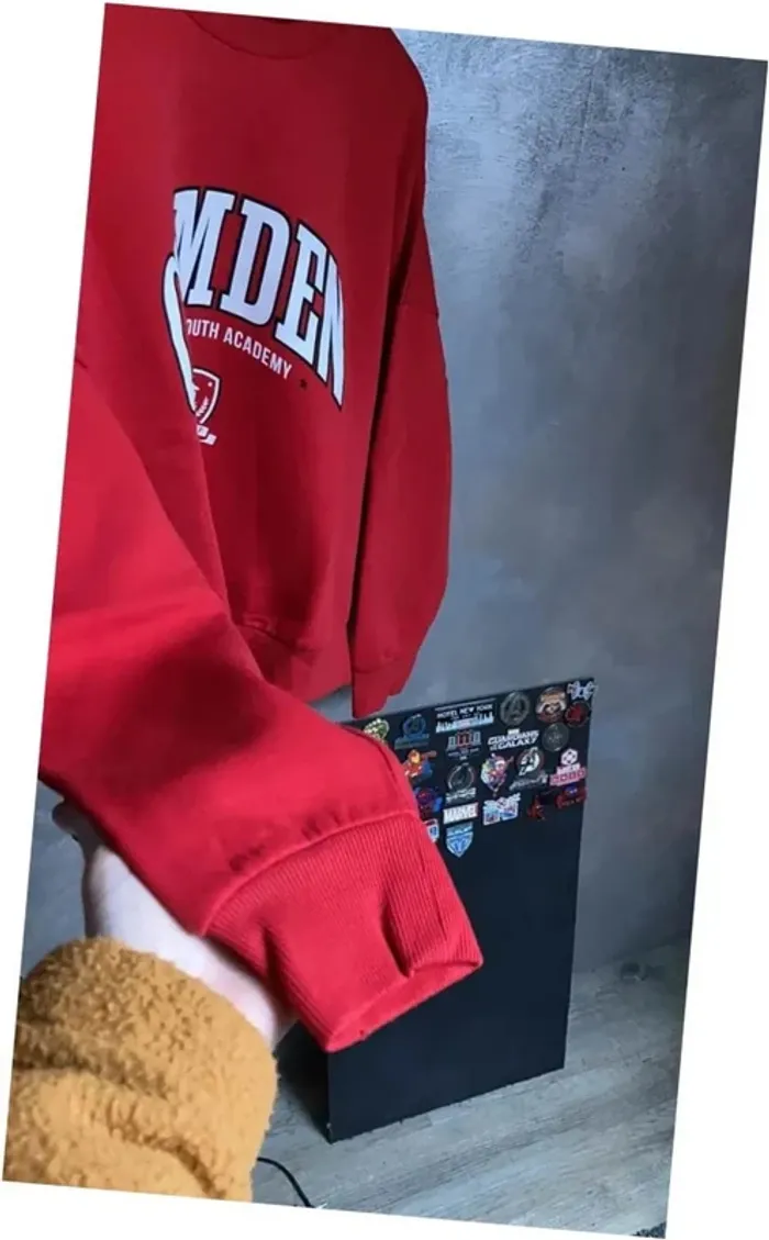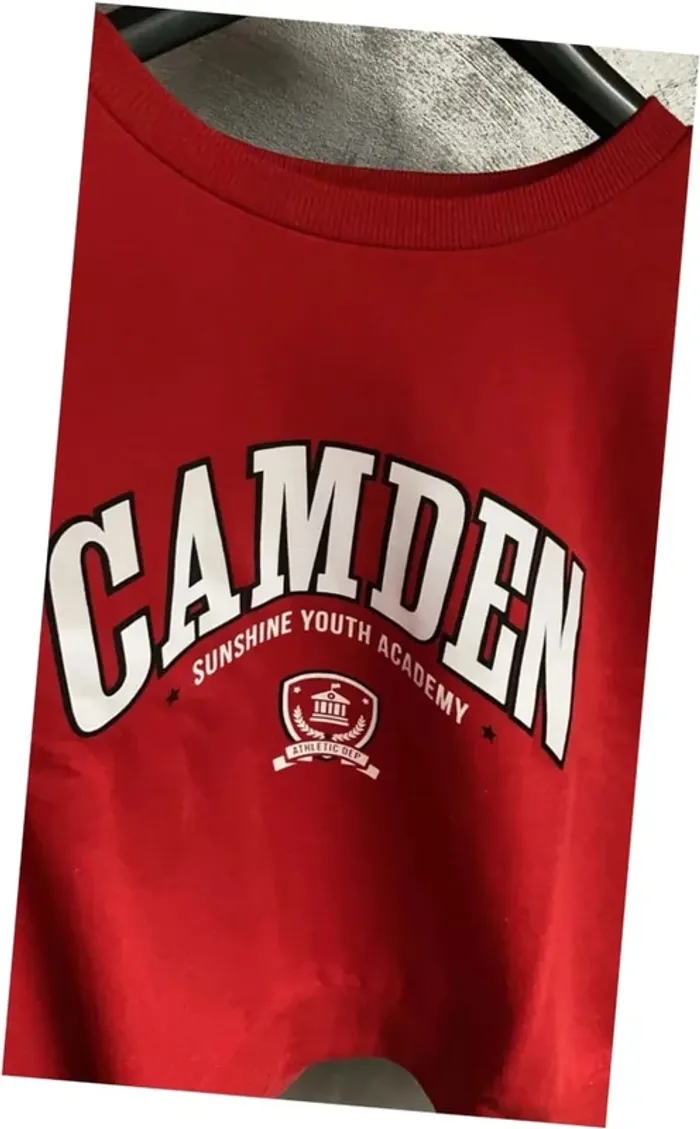 Bonjour, je vend un sweat sans capuche de couleur rouge de la marque Cache Cache en taille L. Sweat en état impeccable, qui n’a jamais été porté. Inscription sur le devant « Camden Sunshine Youth Academy ».