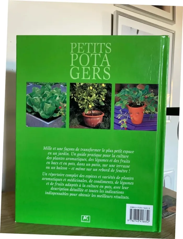 Bonjour, je vend le livre relié « Petits potagers pour balcons, terrasses, rebords de fenêtres… » par Antony Atha aux éditions du Lierre. Livre en très bon état. Très légèrement usé sur la tranche au bord. Le reste est impeccable.