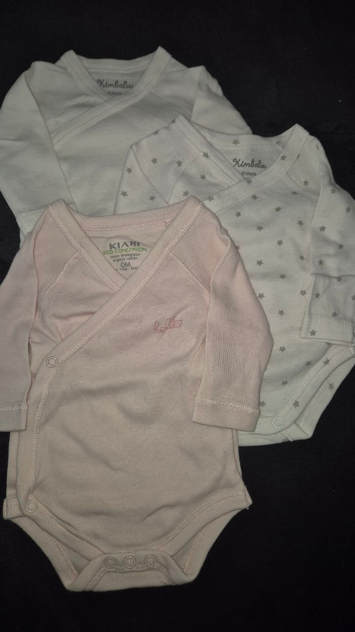 Vend ce lot de 3 bodies manches longues pour bébé fille en taille naissance en très bon état