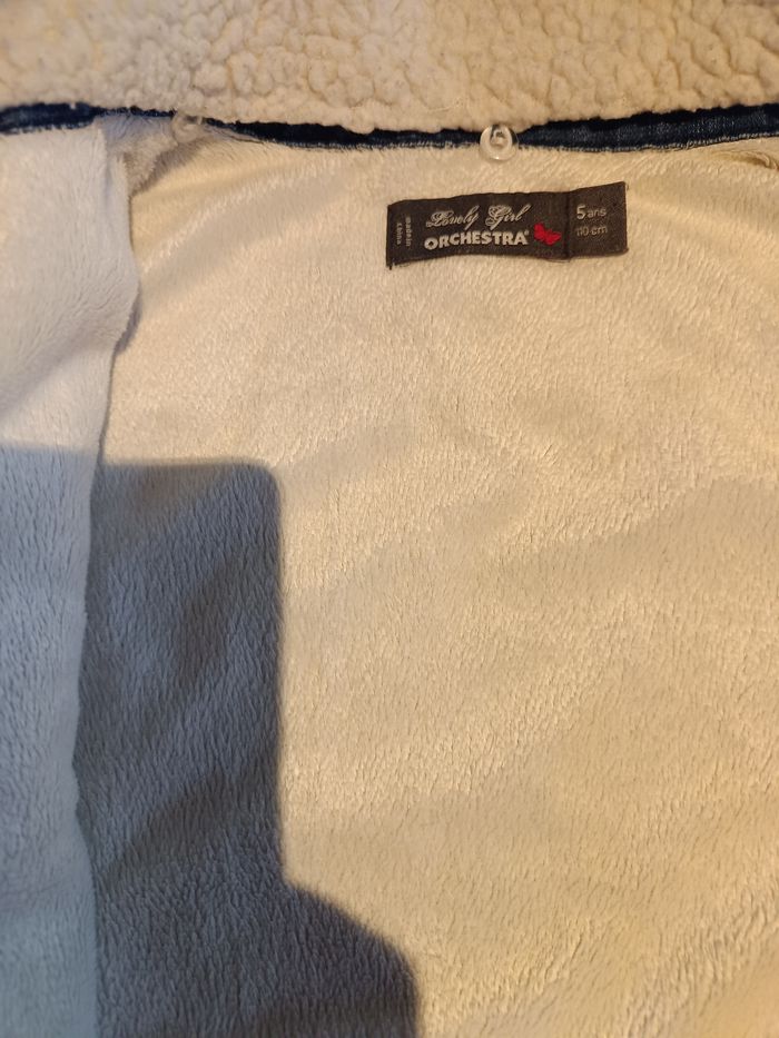 Veste en jean avec intérieur doux. Col moumoute amovible. Fermeture par pressions. Pas de défaut.