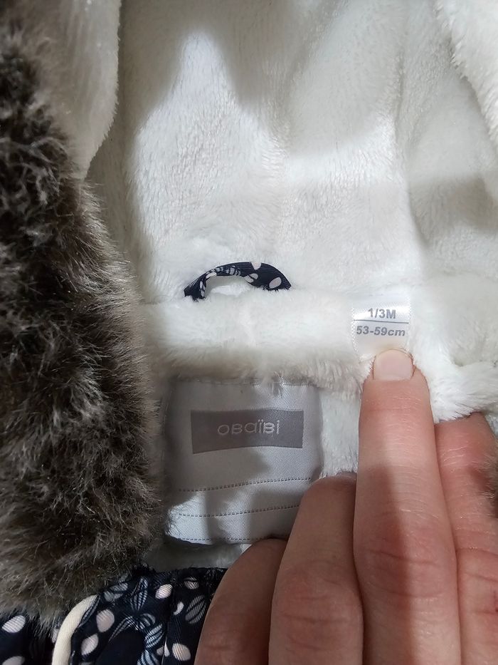 Combinaison pilote taille 1/3 mois très peu porté. Bien chaude pour l'hiver. Marque obaibi #combipilote #1mois #3mois #hiver